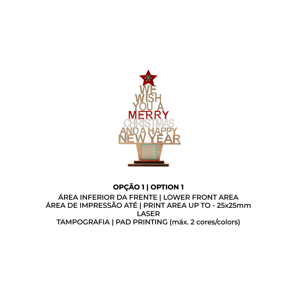 O seu design inclui um espaço para uma mensagem, tornando-a perfeita para personalizar ou usar como um presente sentimental. A árvore vem com um suporte removível, o que facilita a sua montagem, desmontagem e arrumação após a época festiva.