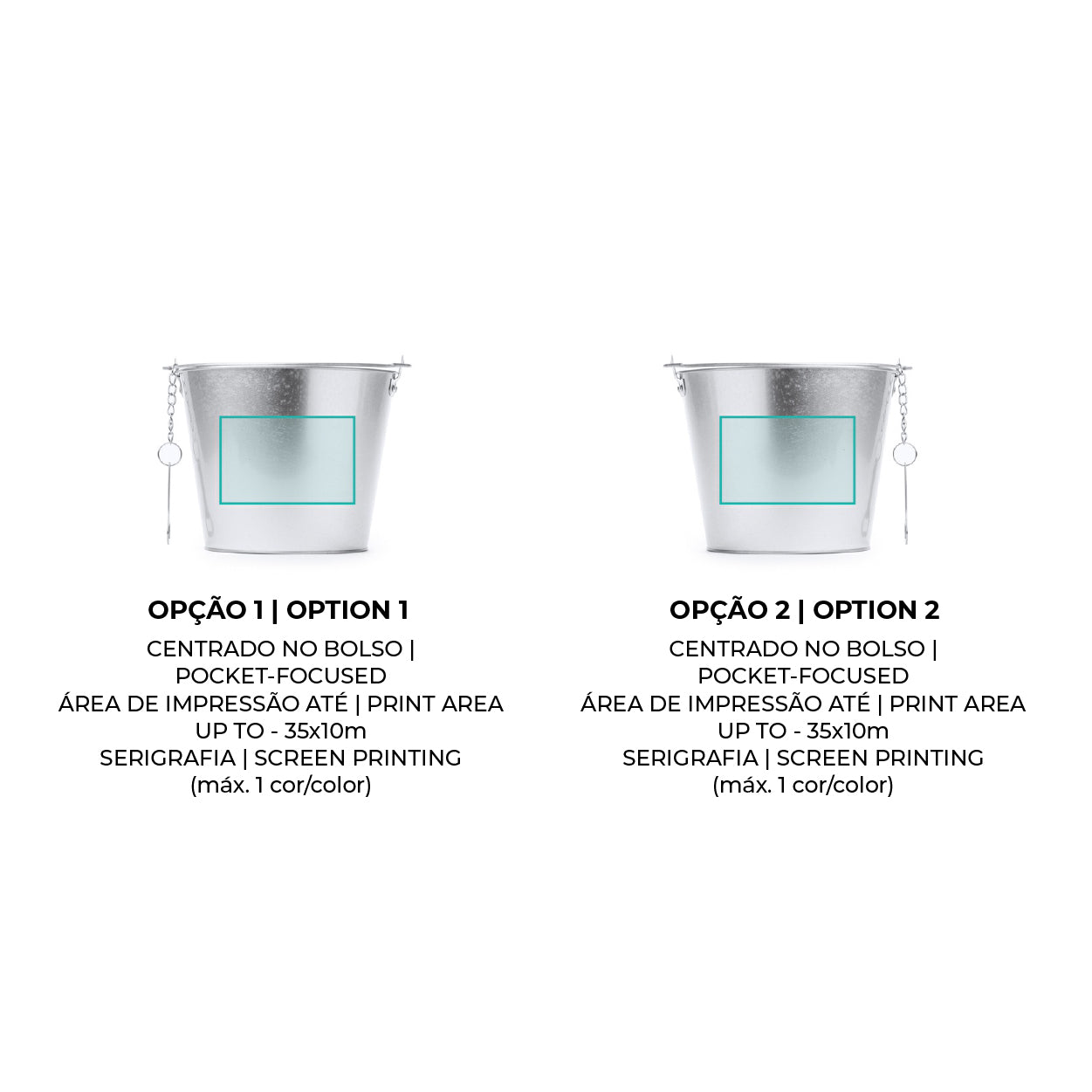 Este balde é fabricado em metal durável, garantindo robustez e uma excelente retenção de frio. Possui uma capacidade de 6 litros, o que o torna perfeito para catering, bares, take-aways ou brindes corporativos.