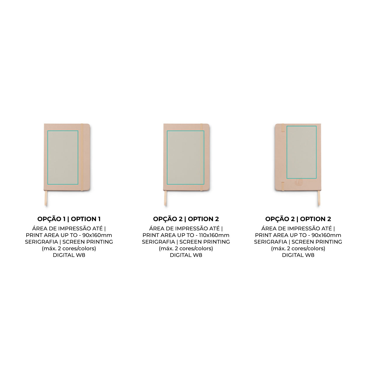 Abrace a vanguarda da sustentabilidade com o Bloco de Notas Ajman. Este bloco A5 destaca-se pela sua capa dura inovadora, fabricada a partir de restos de fruta. Esta tecnologia de reutilização não só confere ao caderno uma origem eco-friendly e única, como também garante uma capa robusta e durável.
