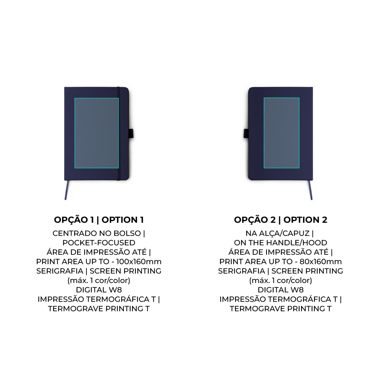 Este bloco de tamanho A5 é feito de PU Reciclado, uma escolha ecológica que proporciona um acabamento de toque suave e premium. O seu destaque é o suporte magnético para telemóvel e caneta, que utiliza 4 ímanes para manter os seus essenciais seguros na capa.