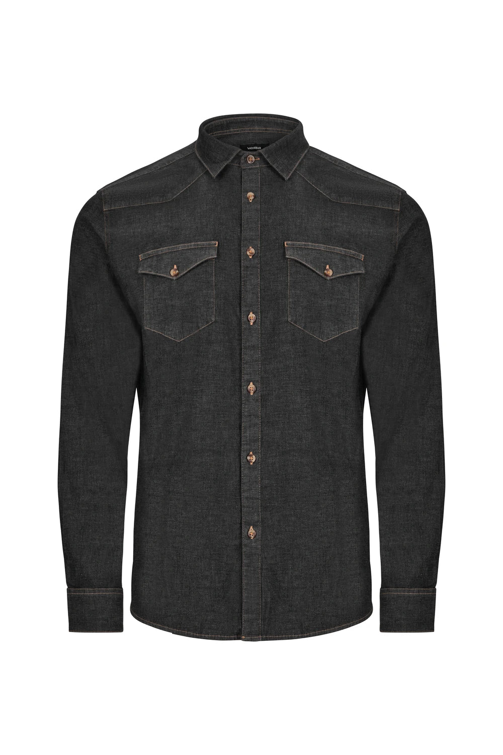 - Cabeção Dianteiro e Traseiro: Reforços nos ombros que não só aumentam a vida útil da camisa, como acentuam a estrutura masculina da peça.