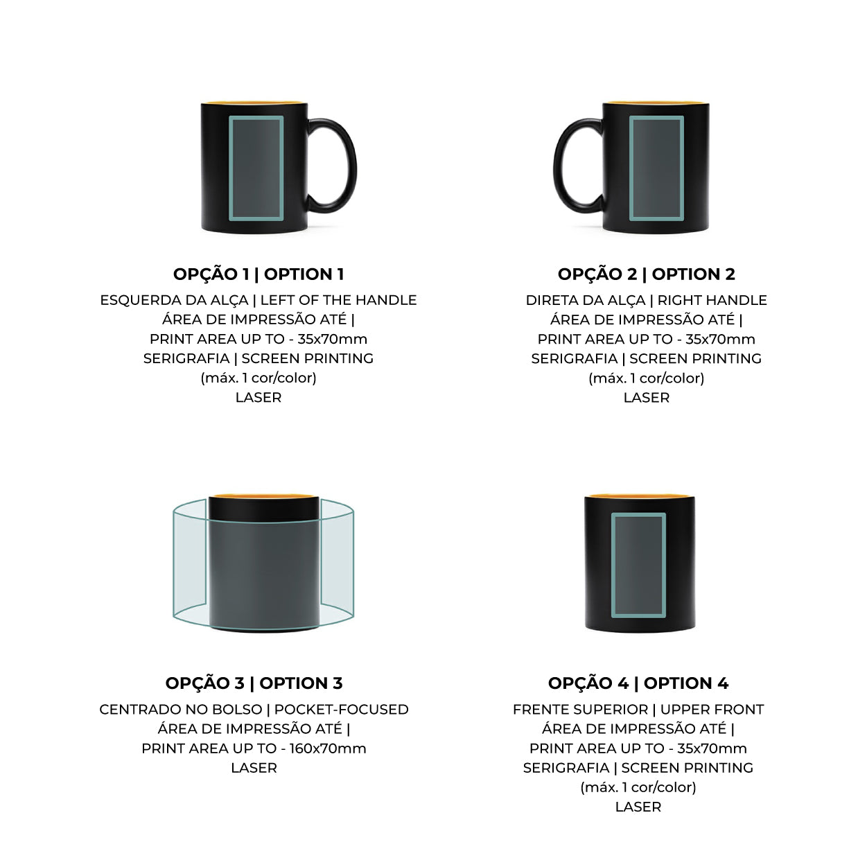 - Ideal para Gravação a Laser: A técnica de laser nesta caneca garante que o logótipo nunca saia com as lavagens, revelando a cor vibrante do interior com uma precisão cirúrgica.
