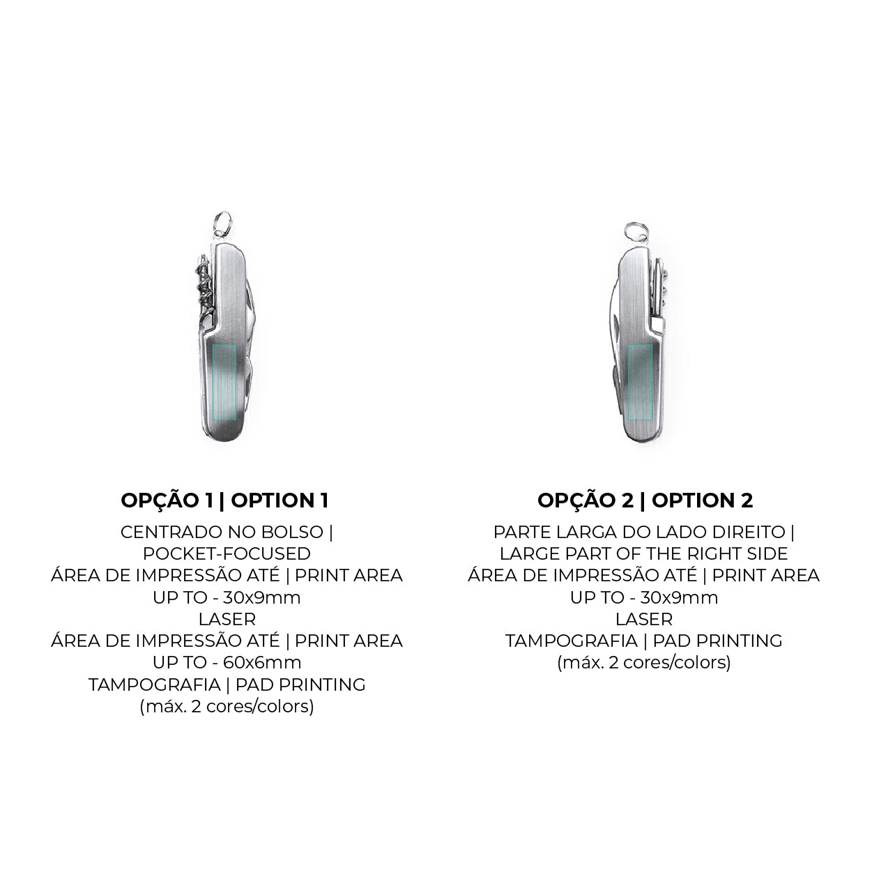 - Porta-chaves: Permite prender o canivete a chaves ou mochilas.