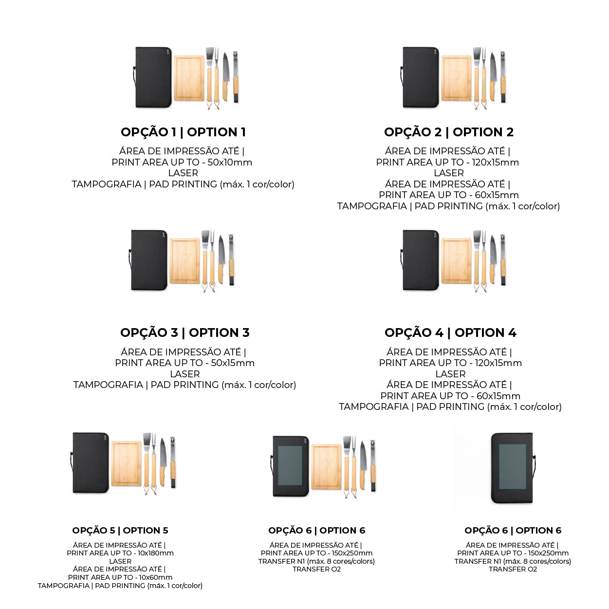 A complementar, o conjunto inclui uma tábua de corte em madeira, essencial para preparar ou servir a carne. Todo o kit é organizado e apresentado num prático estojo de poliéster RPET reciclado – um material sustentável que sublinha o compromisso ecológico do produto.
