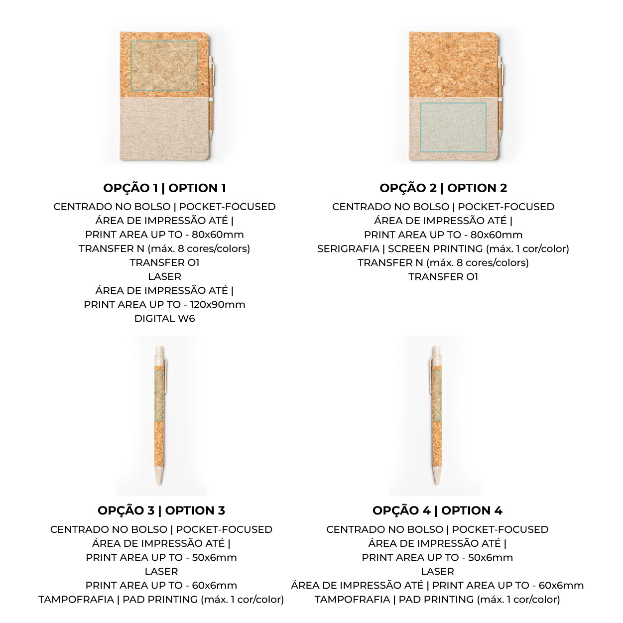 - Materiais de Origem Natural: Capa dura fabricada em cortiça e algodão, oferecendo durabilidade com um toque suave e natural.