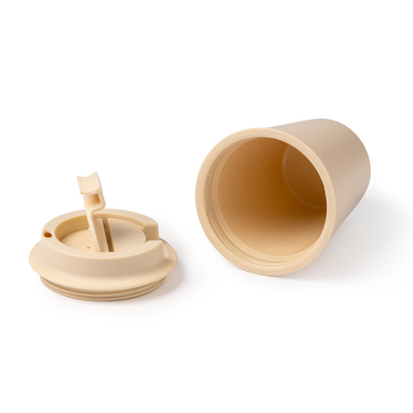 Este copo é fabricado em PP (Polipropileno), tanto no corpo quanto na tampa, garantindo leveza e resistência. Possui uma tampa de enroscar que oferece maior segurança contra fugas e um bico que facilita o consumo da bebida.