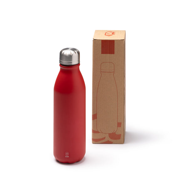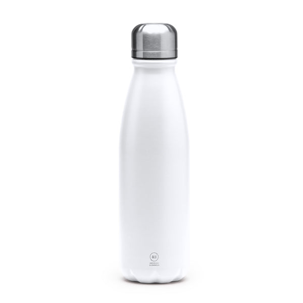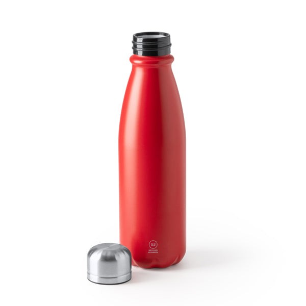 Fabricada em alumínio reciclado, esta garrafa é uma opção sustentável que minimiza o impacto ambiental sem comprometer a durabilidade. Possui um revestimento simples e uma capacidade de 550ml, volume ideal para o uso casual e quotidiano.