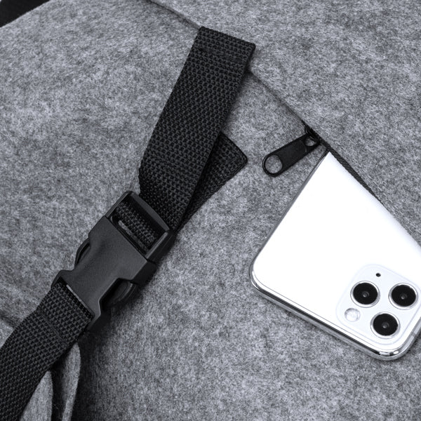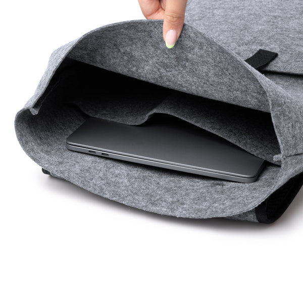 Fabricada em feltro reciclado, esta mochila com aba oferece uma capacidade de 21 Litros e dimensões generosas de 39cm/11cm/50cm.