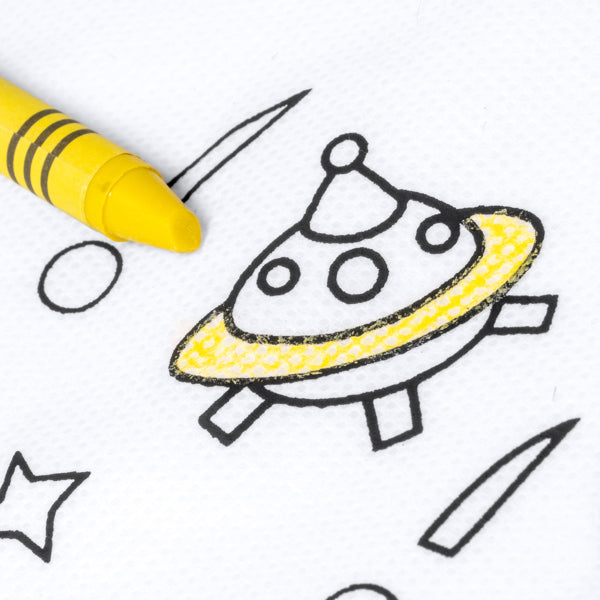 Fabricada em não-tecido, esta mochila de corda é leve e resistente o suficiente para o uso infantil. O seu destaque principal são os desenhos para colorir impressos diretamente na superfície, permitindo que a criança personalize a sua própria mochila.