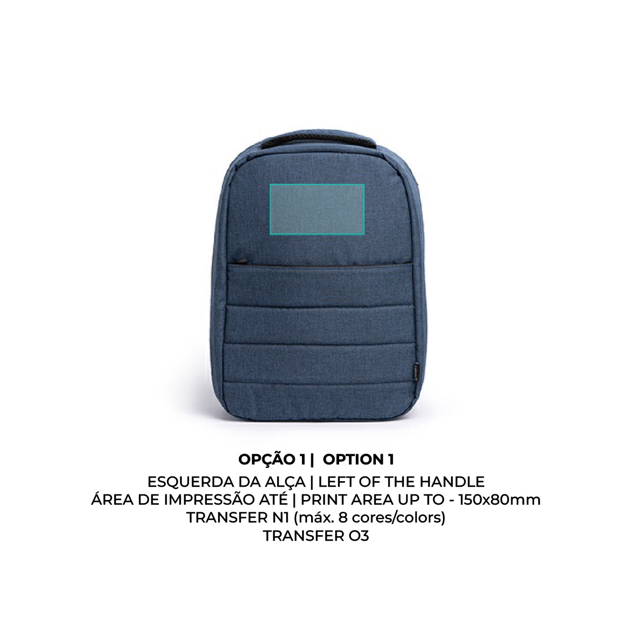 Esta mochila é fabricada em RPET 300D, um material reciclado que atesta o seu compromisso com a sustentabilidade. O design é focado na segurança antirroubo, complementado por uma construção ergonómica com alças e costas almofadadas que garantem conforto durante todo o dia.