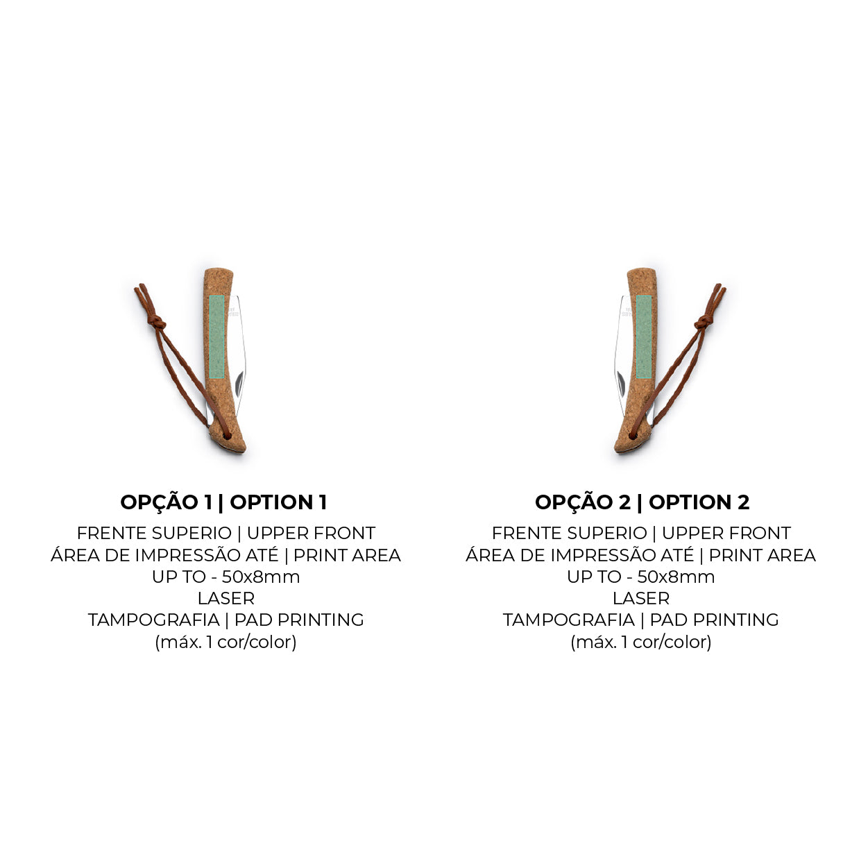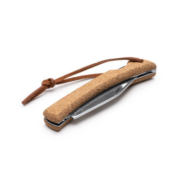 Este canivete dobrável destaca-se pela sua lâmina em aço inoxidável afiada, que garante cortes eficazes e precisos. O punho é o grande elemento diferenciador: fabricado em cortiça, um material natural, renovável e com um toque inconfundível, confere à navalha uma estética única e um perfil ecológico de alto valor.