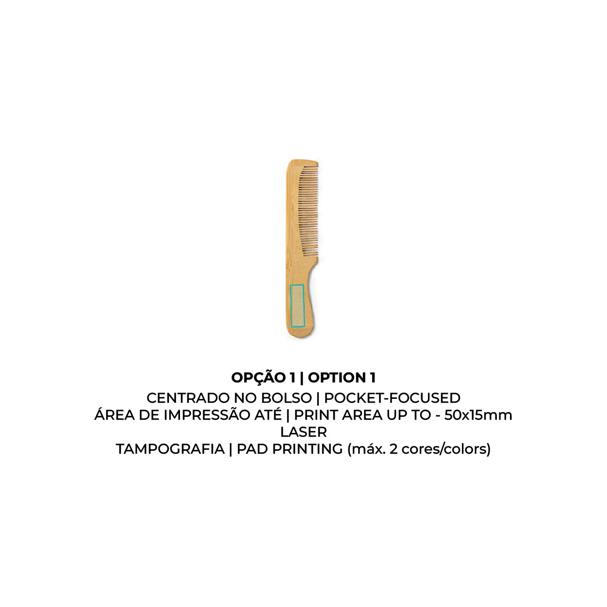 O pente é integralmente fabricado em bambu, um material ecológico, renovável e biodegradável. A inclusão de um cabo proporciona uma pega mais firme e controlada, facilitando a ação de pentear e desembaraçar, especialmente para cabelos mais longos ou espessos.