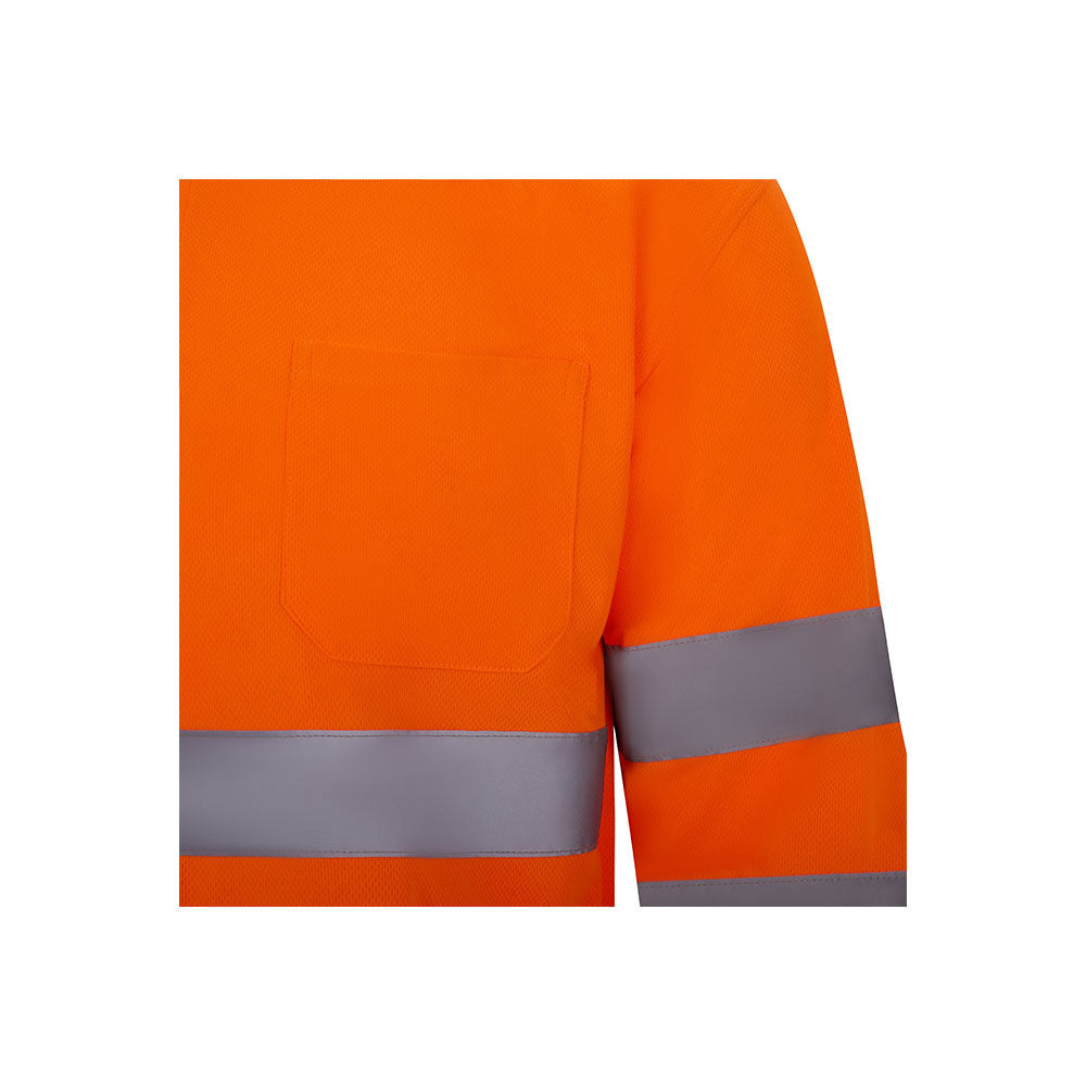 Segurança Certificada Classe 2. Inserido na gama Basic, este polo garante um nível superior de proteção passiva ao cumprir a norma EN ISO 20471 Classe 2. As suas faixas refletoras contínuas no tronco e nas mangas asseguram que o utilizador é detetado à distância em condições de risco elevado, como em vias públicas ou estaleiros de construção, oferecendo uma visibilidade total de 360º.