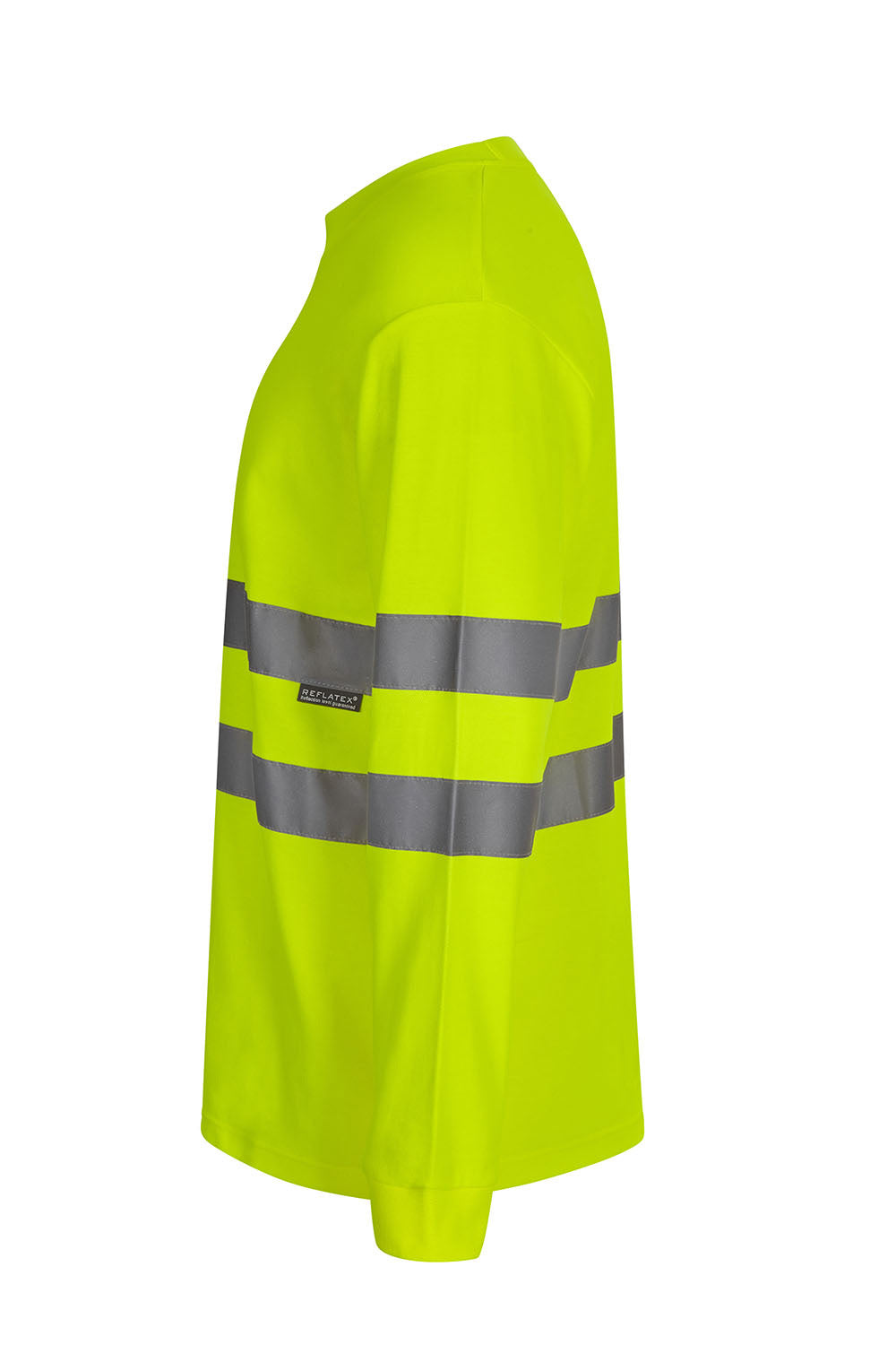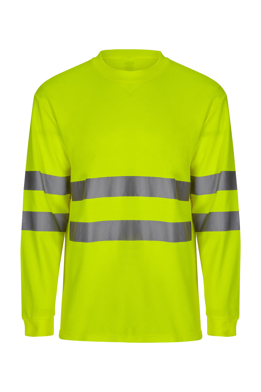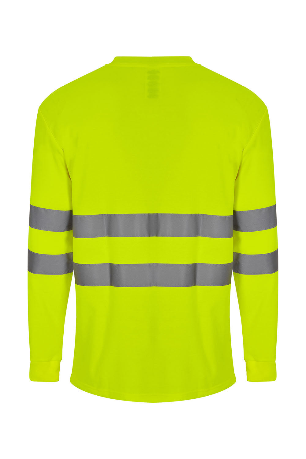 A proteção robusta com o toque natural do algodão. A Vila Nova de Foz Côa é uma t-shirt de manga comprida concebida para quem trabalha em ambientes que exigem um nível superior de visibilidade. Integrada na gama Hi Vis Cotton, esta peça utiliza um tecido Piqué (55% algodão e 45% poliéster) de 150 g/m², que combina a suavidade e respirabilidade das fibras naturais com a resistência estrutural do poliéster.
