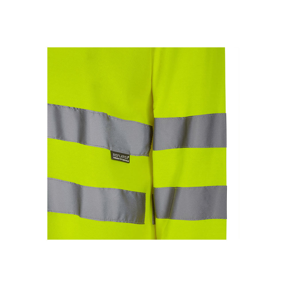 Certificação Classe 2 para máxima confiança. Ao contrário de modelos básicos, esta t-shirt está certificada com a norma EN ISO 20471 Classe 2, garantindo uma área de material refletor e fluorescente adequada para trabalhos em vias públicas ou zonas com tráfego rodoviário. As faixas refletoras contínuas no torso e mangas asseguram que o utilizador é detetado à distância, independentemente do ângulo ou das condições de luminosidade.