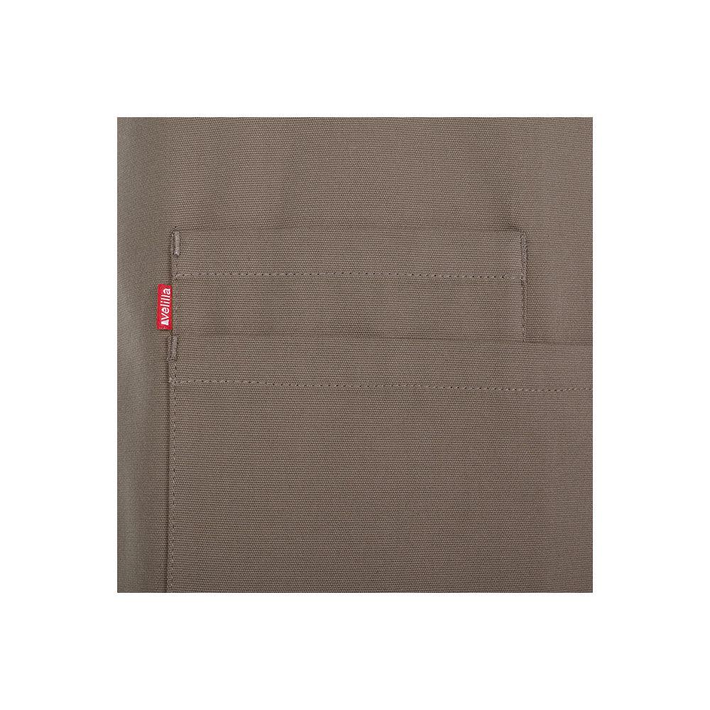 - Tratamento Repelente de Líquidos: A tecnologia aplicada ao tecido orgânico faz com que água, vinho e outros líquidos deslizem pela superfície, facilitando a limpeza e mantendo o avental com um aspeto limpo e profissional.