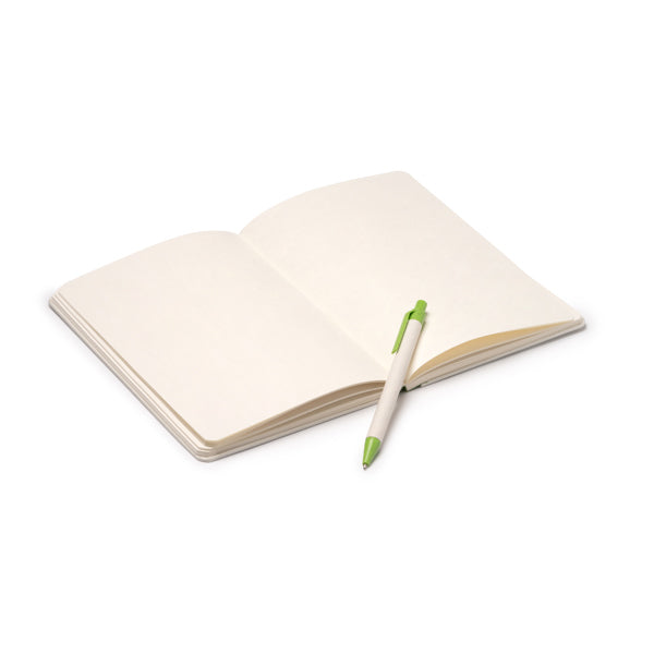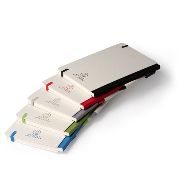 O Bloco de Notas Ashgabat apresenta-se como um kit de escrita A5 completo, onde cada detalhe foi pensado para a sustentabilidade e conveniência. Distingue-se por ser fabricado a partir de cartão reciclado de pacotes de leite, provando que é possível combinar materiais de origem ecológica com um design integrado e altamente funcional. Este bloco de notas é o companheiro ideal para o uso quotidiano, oferecendo tudo o que precisa para tomar notas num só lugar.