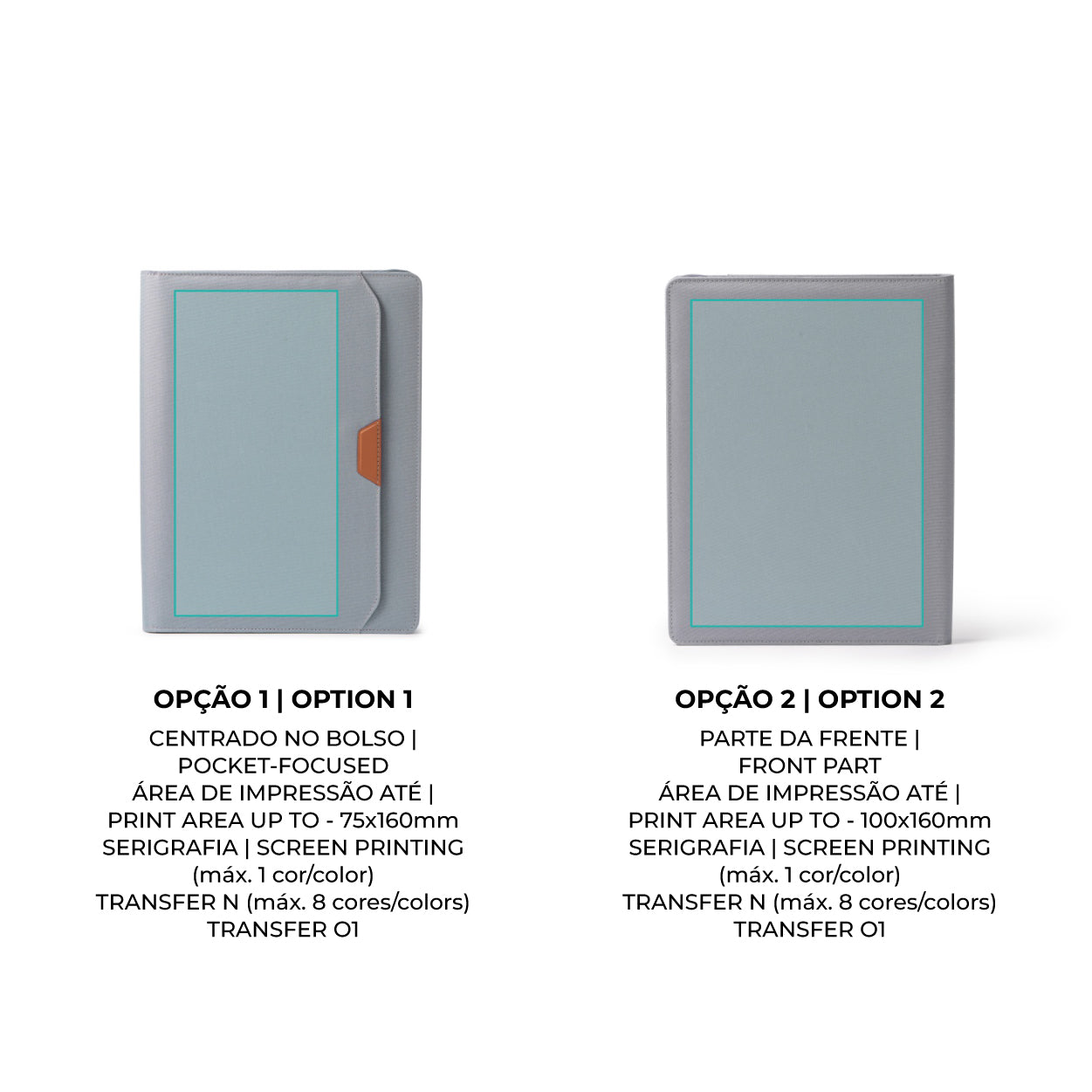 - Bolso Exterior: Possui um prático bolso exterior, ideal para guardar documentos soltos, cartões de visita ou notas rápidas.