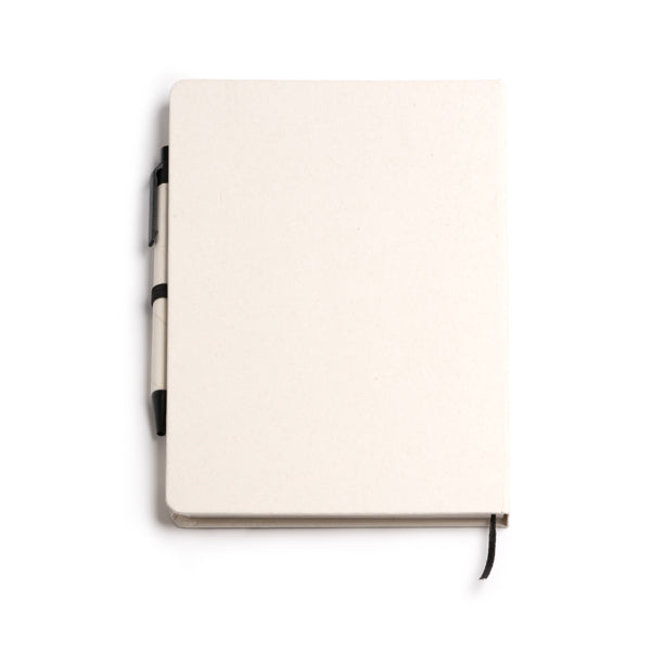 O Bloco de Notas Jalal-Abad eleva o padrão dos acessórios de escrita sustentáveis. Distingue-se pela sua capa dura protetora, ideal para quem precisa de um suporte robusto para escrever em qualquer lugar. Este bloco A5 é fabricado a partir de cartão reciclado de embalagens de leite, o que o torna uma escolha ecologicamente responsável. Com a esferográfica e os acessórios de organização já incluídos, o Jalal-Abad é uma solução completa para as suas necessidades de anotação.
