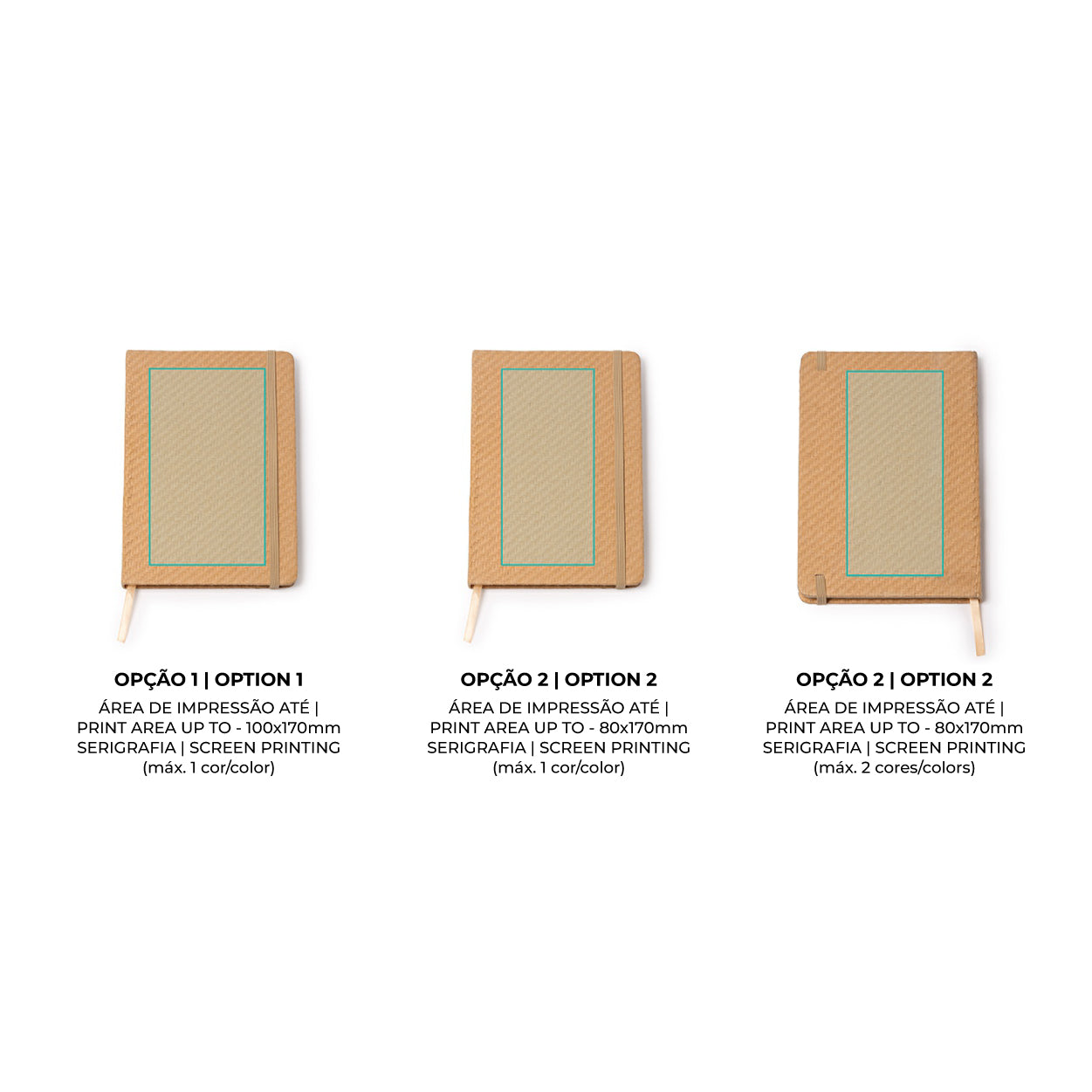 - Material Natural: A capa dura em palha natural oferece uma alternativa sustentável e confere um acabamento diferenciador e orgânico.