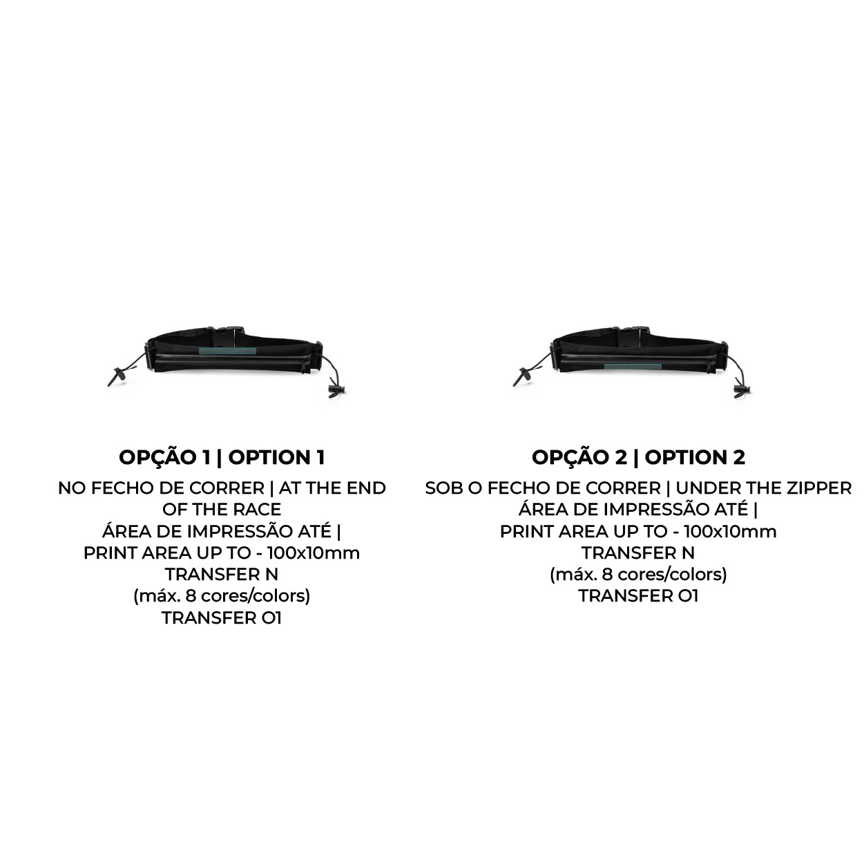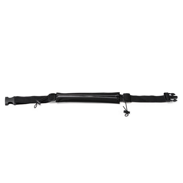 A bolsa de cintura é fabricada em poliéster spandex, um material elástico e ajustável que proporciona um ajuste confortável ao corpo. Possui um bolso principal com um fecho de correr à prova de água, protegendo o seu telemóvel, chaves ou dinheiro da humidade.