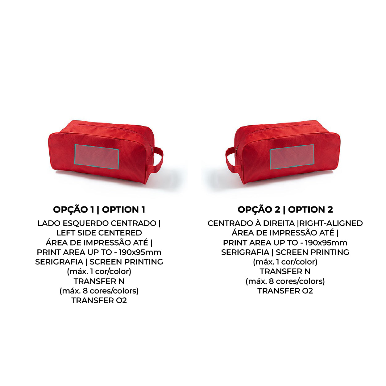 Com dimensões compactas de 35cm/16cm/15cm, adapta-se à maioria dos tamanhos de calçado, protegendo o restante conteúdo do seu saco de desporto ou mala de viagem contra sujidade e odores. Inclui uma alça prática que facilita o transporte manual. A Bolsa Desportiva Teotihuacan é um brinde funcional para desportistas e viajantes.