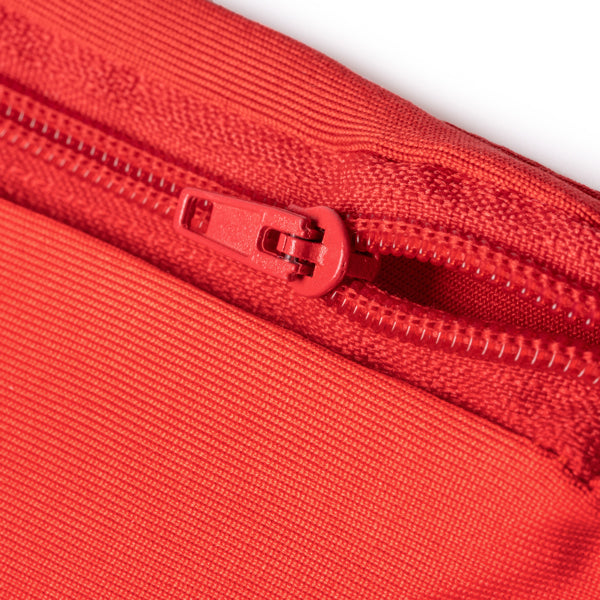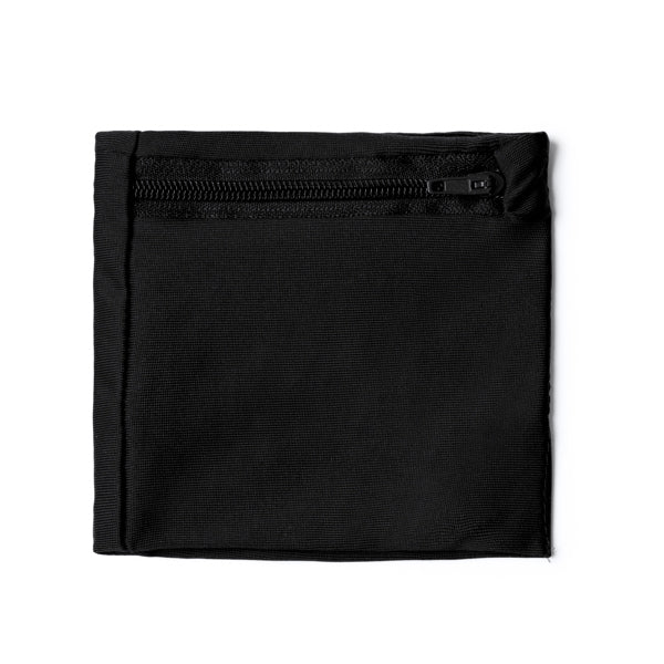 A braçadeira é fabricada em microfibra macia, garantindo um toque suave e agradável na pele, e um ajuste confortável e seguro no braço graças à sua natureza elástica. O principal recurso é o bolso incorporado com fecho de correr (zíper), ideal para guardar o telemóvel, chaves ou dinheiro de forma segura, protegendo-os do suor e minimizando o risco de perda.