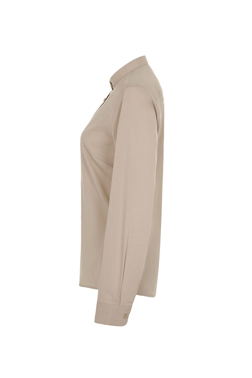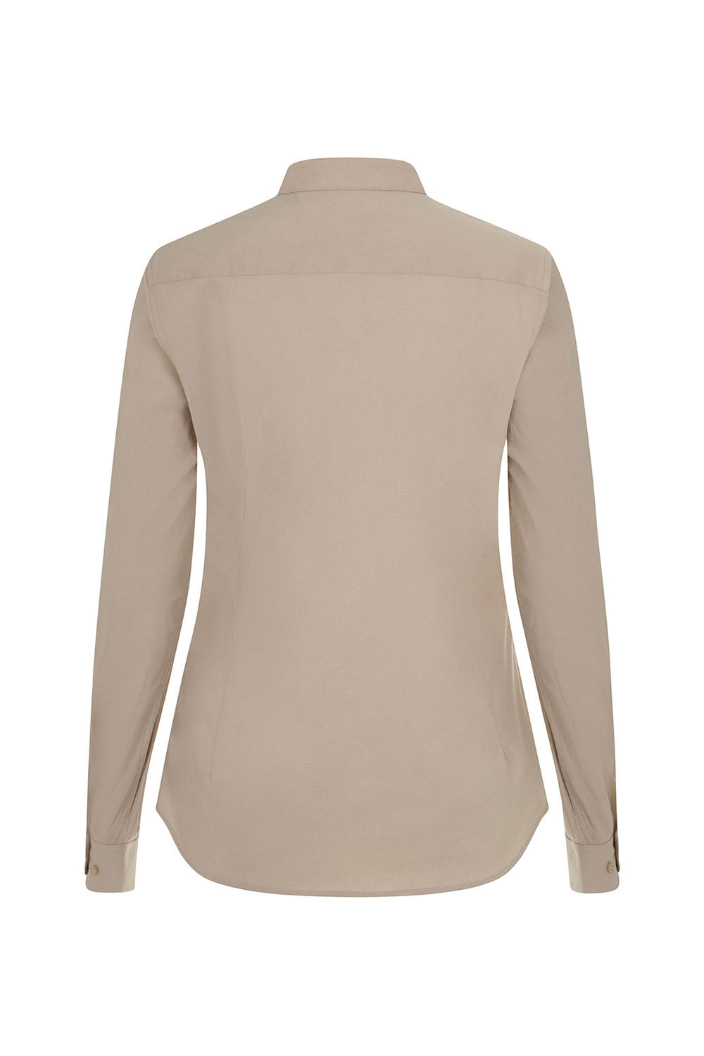 A sofisticação contemporânea para um serviço diferenciado. A camisa Bikaner de manga comprida afasta-se do design tradicional para oferecer uma estética moderna e minimalista através da sua gola tira (gola de padre). Fabricada em popelina stretch de 115 g/m², esta peça é a escolha ideal para estabelecimentos que procuram um uniforme de Hotelaria e Sala com um toque vanguardista, sem abdicar da mobilidade total proporcionada pelo elastano.