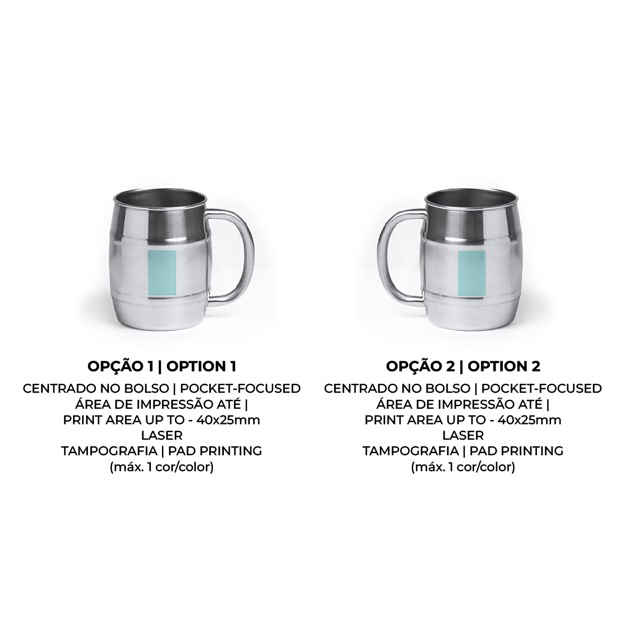 A caneca é apresentada individualmente numa caixa branca, e as suas dimensões são de 11x8.5cm. É o objeto ideal para quem procura aliar a tradição de beber cerveja à durabilidade e ao brilho do metal.