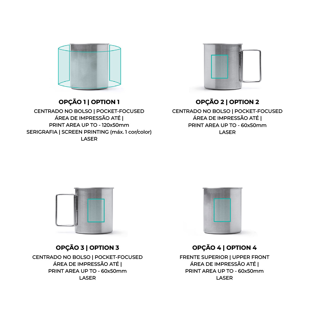 A caneca é apresentada numa caixa branca. Devido à sua composição em aço, não é recomendada para uso em micro-ondas nem para limpeza em máquina de lavar loiça, sendo a lavagem manual a forma ideal de preservar a sua qualidade. As suas dimensões são de 9,3x8,4cm.