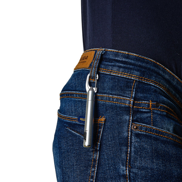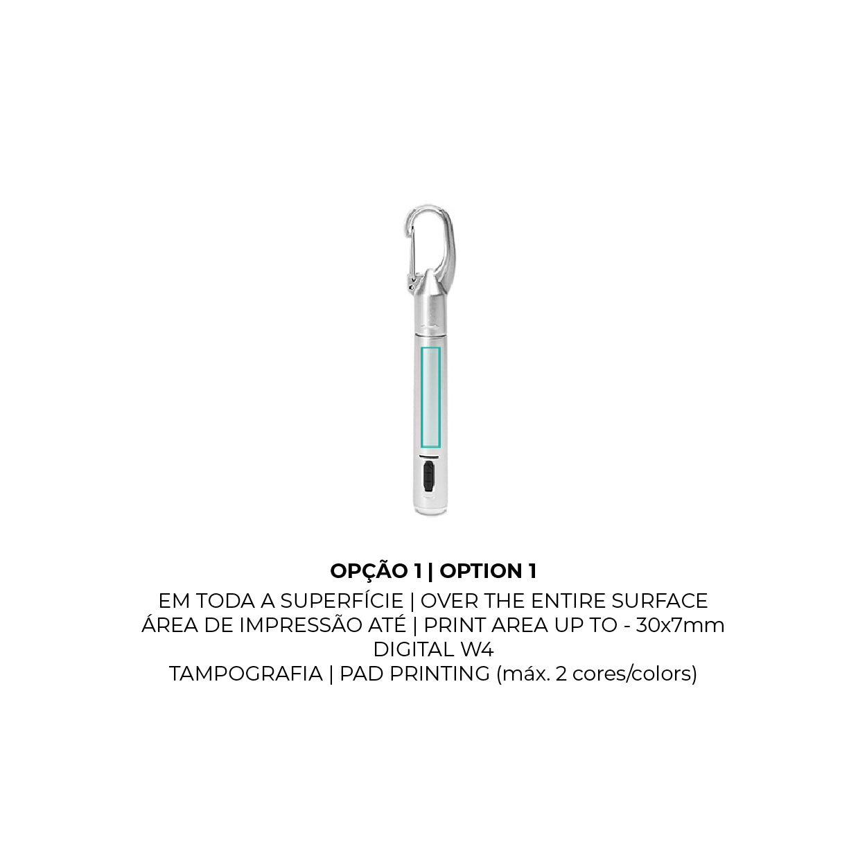 A caneta tem um mosquetão integrado na tampa, que permite prendê-la facilmente a um bolso, argola de cinto ou bloco de notas. As pilhas de botão necessárias para a lanterna estão incluídas. Com dimensões de 11cm / 1cm, é compacta e muito útil.