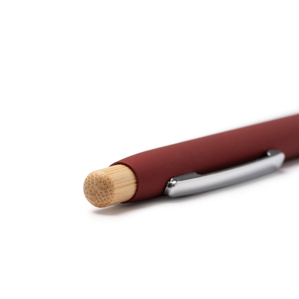O acabamento do botão de pressão e os detalhes em bambu conferem um design natural e um toque único de sofisticação. O clip cromado adiciona um brilho subtil e a conveniência de a poder prender facilmente ao seu bolso ou caderno.