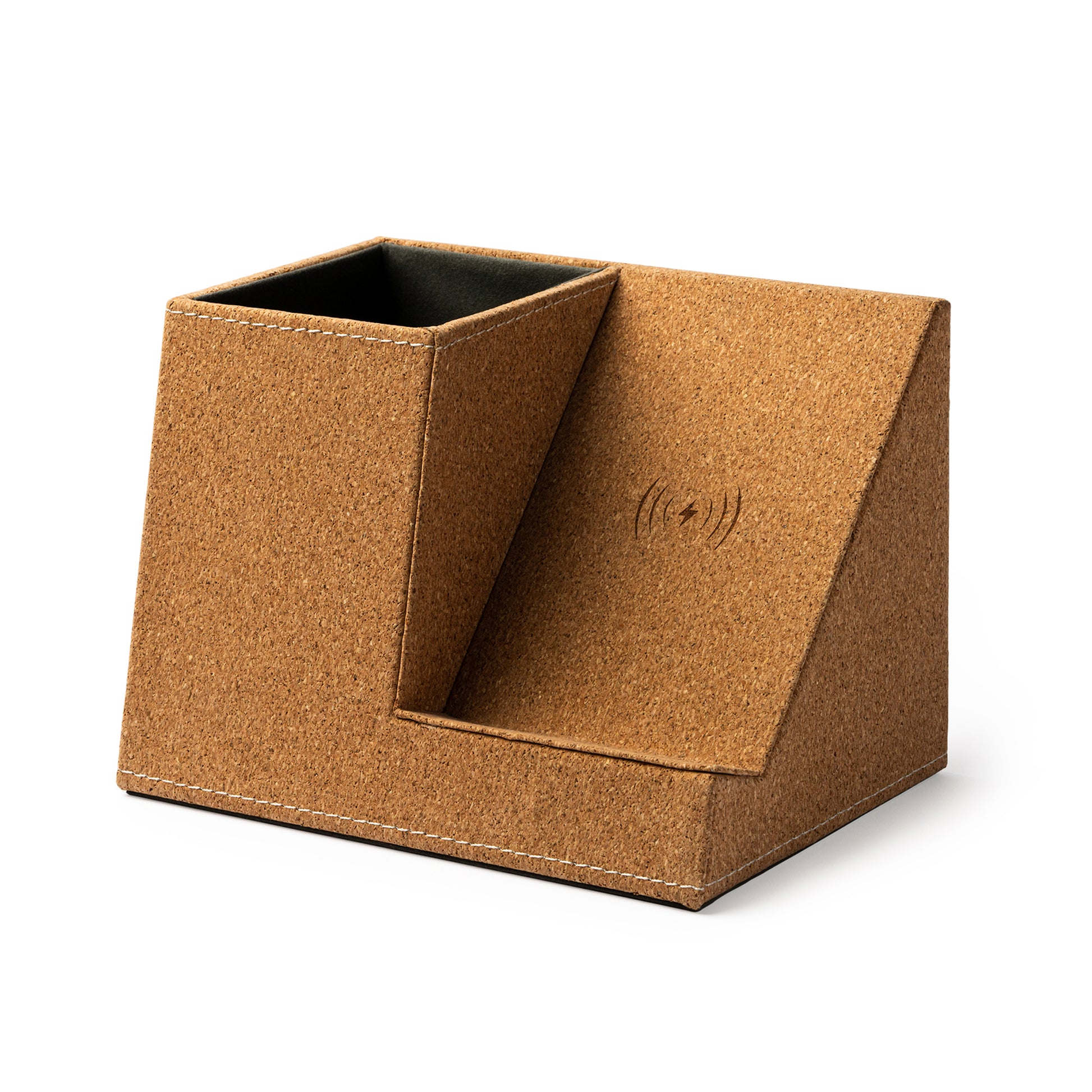 Mantenha a sua secretária organizada e os seus dispositivos carregados com o Carregador Sem Fios Madurai. Este acessório inteligente, feito de cortiça natural, é a união perfeita entre um suporte para lápis e um carregador.