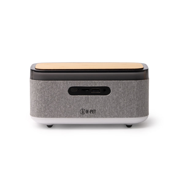 A peça definitiva para quem procura organização e bem-estar num só dispositivo. A Coluna Madang não é apenas um sistema de som; é uma estação de lifestyle inteligente que integra despertador, relógio digital, candeeiro de ambiente e carregador sem fios. Com um design sofisticado que combina o calor do bambu com o revestimento em tecido RPET reciclado, este modelo é o parceiro ideal para começar e terminar o dia com serenidade e eficiência.