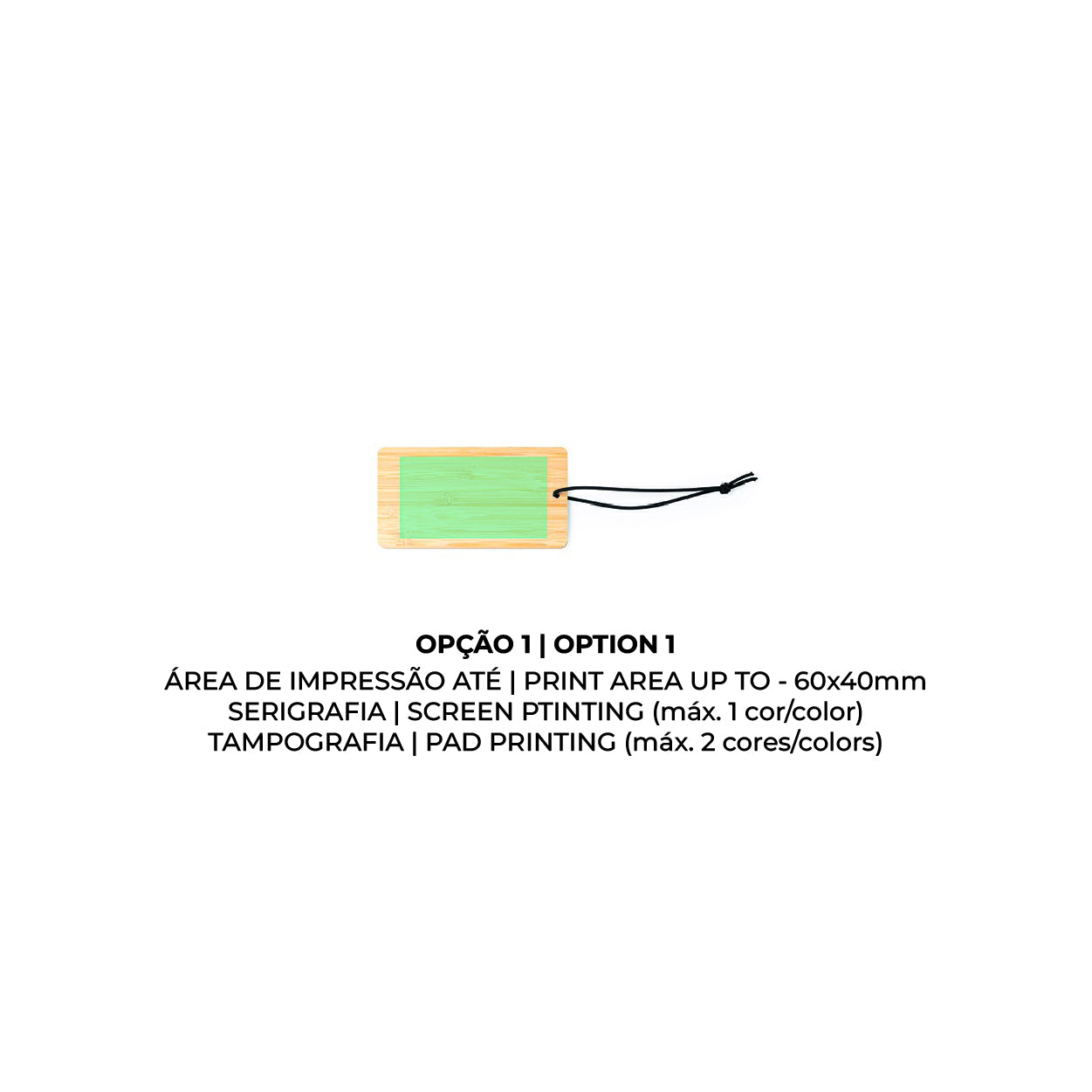 A etiqueta é feita em bambu, um material orgânico e renovável que confere um aspeto premium e ecológico. Para a fixação, inclui uma fita elástica preta resistente, que permite prender a etiqueta de forma rápida e segura a qualquer tipo de mala, mochila ou bagagem.
