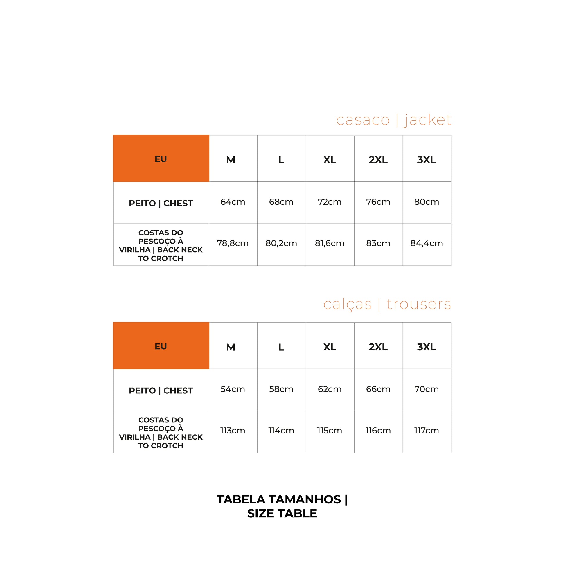 - Visibilidade 360º: Faixas refletoras no torso, mangas e zona inferior das calças para sinalização total do corpo.
