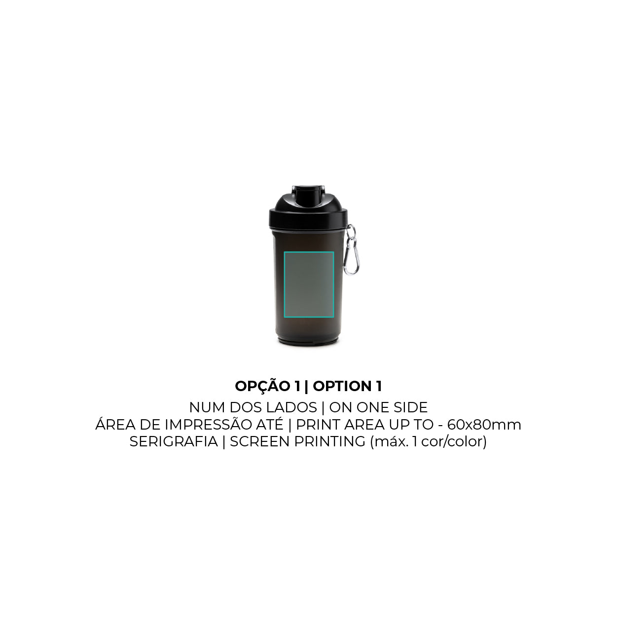 Para total conveniência, a garrafa inclui um dispensador em PP com compartimentos anexos, perfeitos para transportar suplementos em pó ou vitaminas. Um prático mosquetão está incluído para fixação fácil a mochilas ou sacos de ginásio. A apresentação é premium, pois o produto é fornecido numa caixa de design.