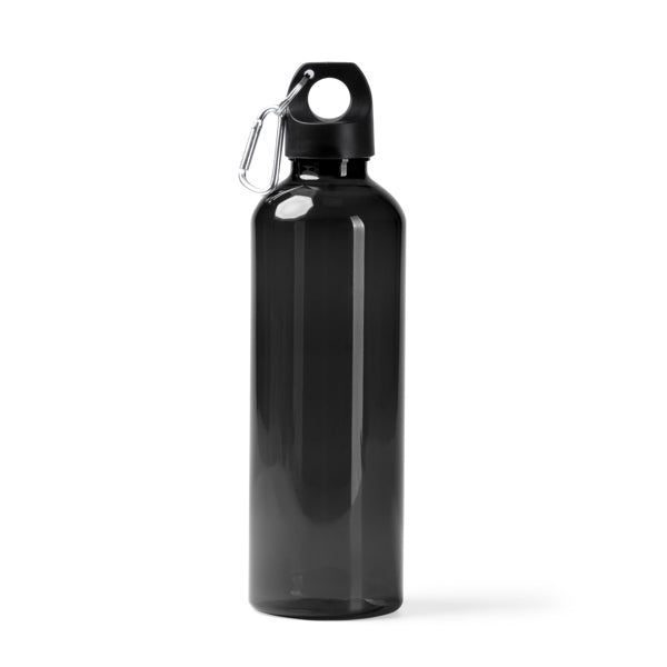 Com uma capacidade substancial de 800ml, o corpo da garrafa é fabricado em RPET (poliéster reciclado), uma escolha ecológica que apoia a redução de resíduos. O design integra funcionalidades que facilitam o transporte e a utilização diária.