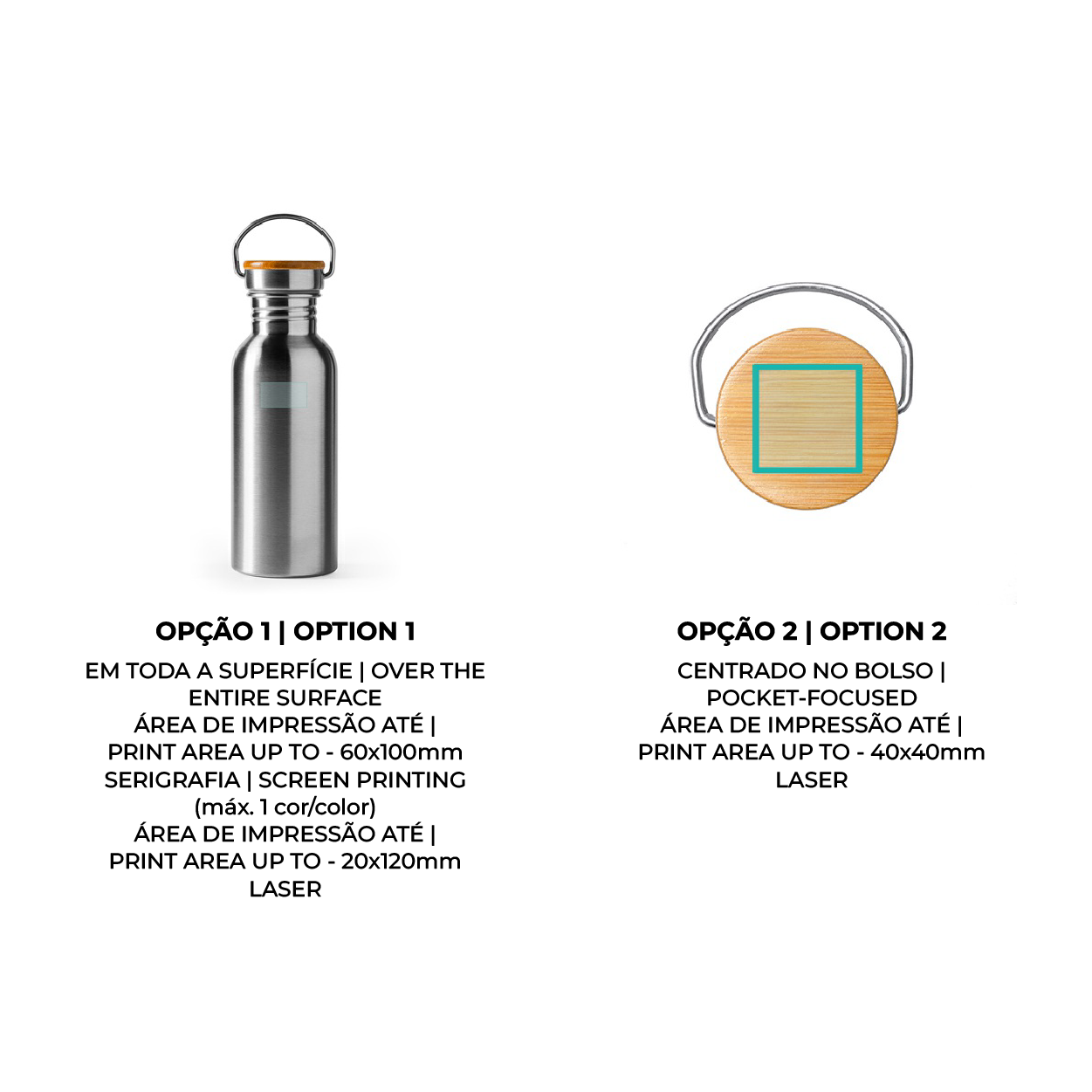 A tela perfeita para a sua mensagem promocional com um toque de elegância natural. A Garrafa Sheffield foi concebida especificamente para a personalização de alta qualidade, combinando a durabilidade do metal com a estética orgânica do bambu.