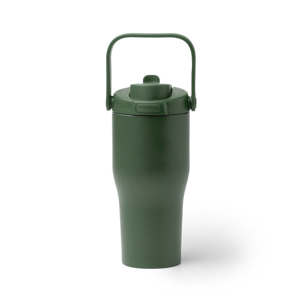 Sistema de abertura de alta precisão. O seu design destaca-se pela tampa de rosca equipada com um dispensador automático de abertura dupla. Através de um simples botão de pressão, acede a uma palhinha dobrável integrada, permitindo uma hidratação rápida e higiénica com apenas uma mão. Para garantir total segurança no transporte, possui reforços de silicone que compõem um sistema anti-gotejamento infalível, evitando qualquer fuga de líquidos na sua mochila ou mala.