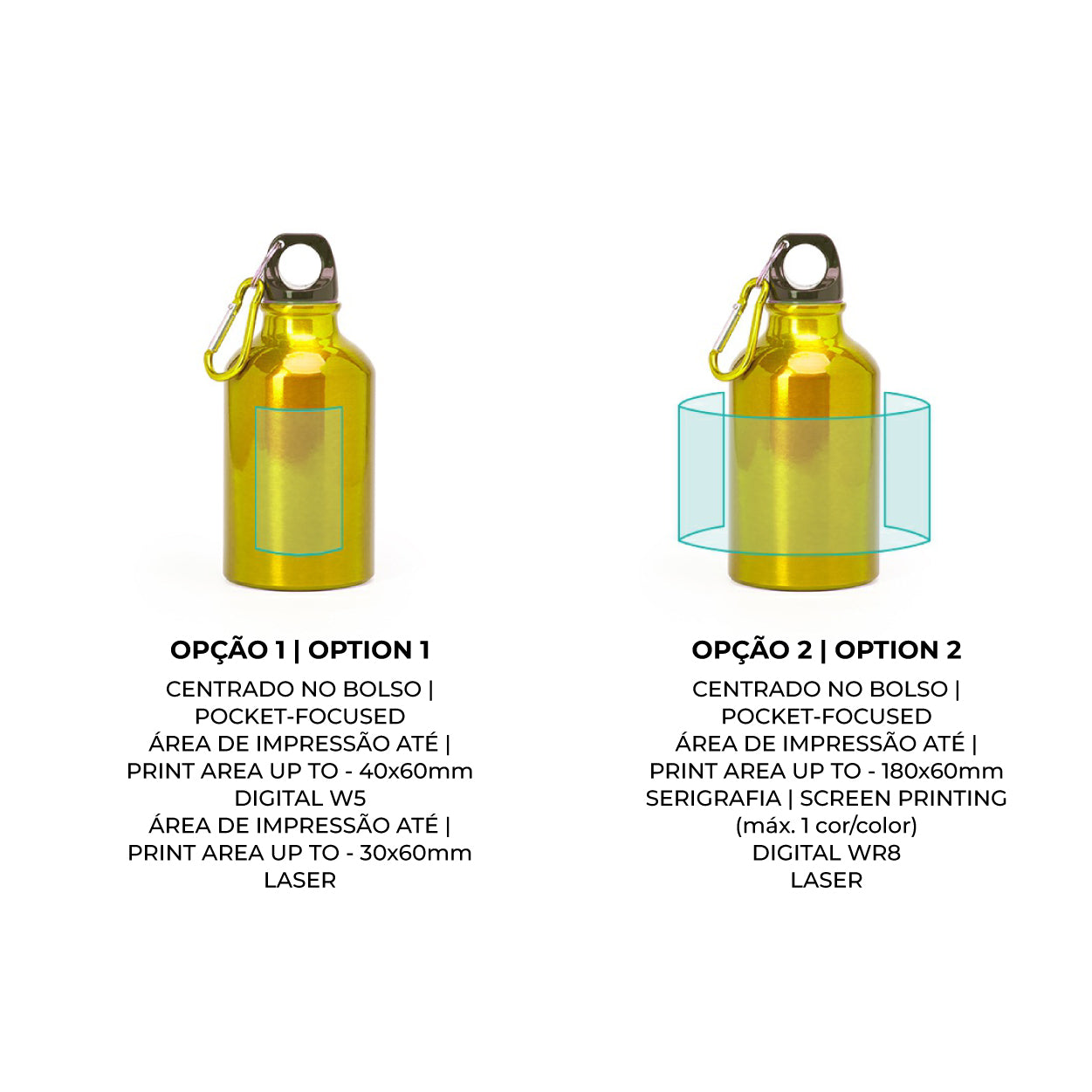 Com uma capacidade de 330ml, o seu volume mínimo "facilita carregá-la sempre consigo". A garrafa é fabricada em alumínio leve e durável, apresentando uma estética elegante com uma tampa preta em contraste e um mosquetão na mesma cor metálica do corpo da garrafa.