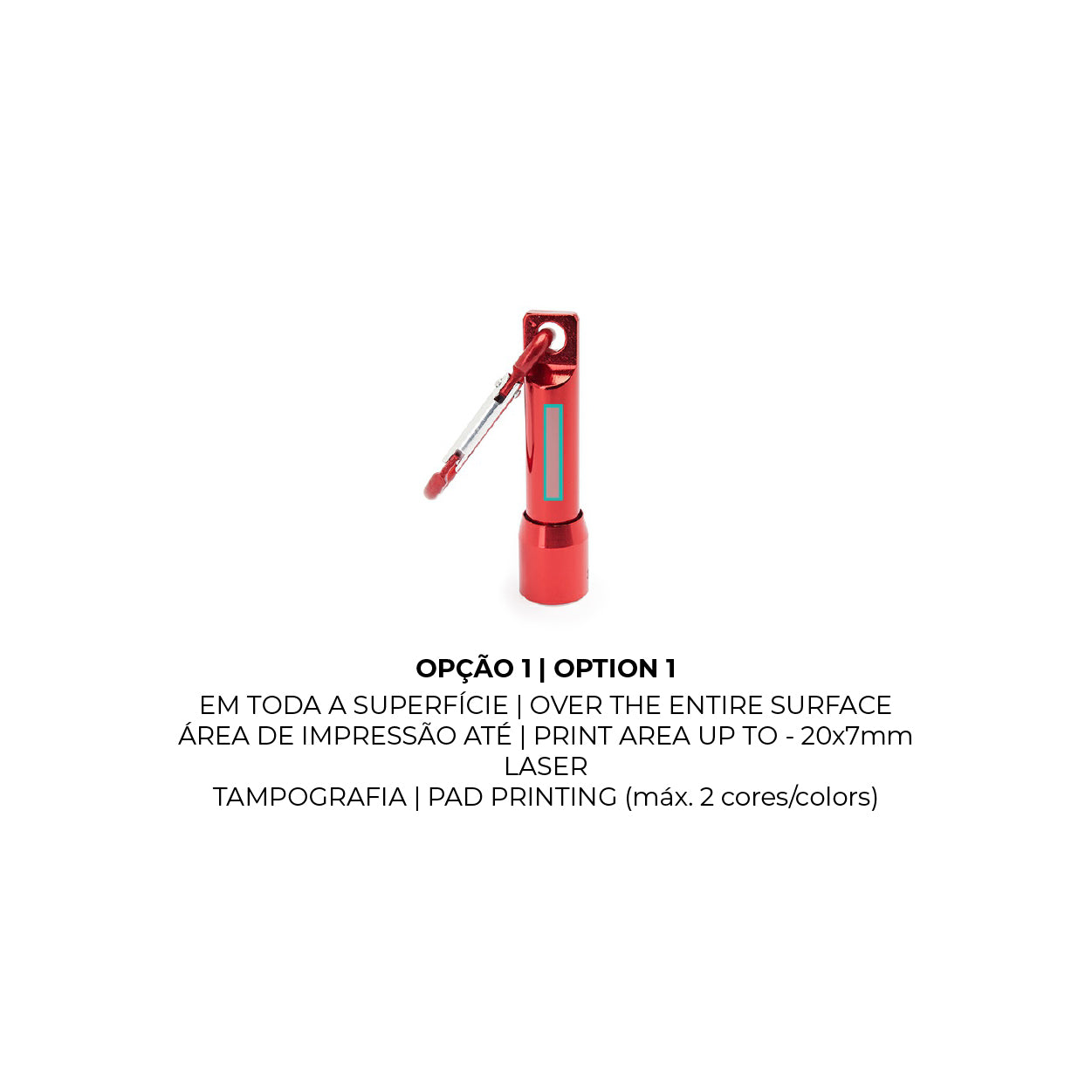 Para máxima conveniência de transporte, inclui um mosquetão a combinar com o corpo da lanterna. As pilhas de botão necessárias para o seu funcionamento estão incluídas, garantindo que o produto está pronto a usar. A Lanterna Sopron é um brinde promocional prático e discreto.
