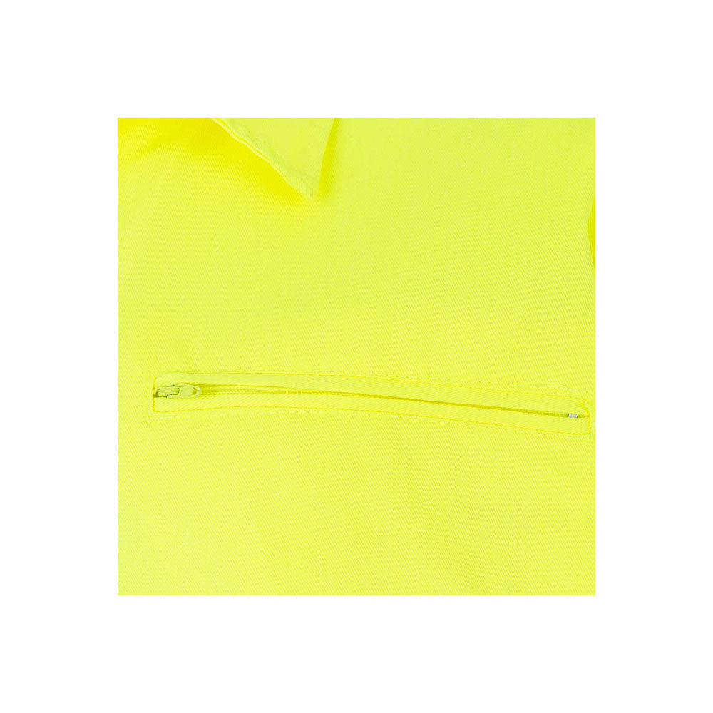 Material | Sarja. / Tecido fluorescente amarelo: 80% poliéster - 20% algodão / 210 g/m2 / Tecido fluorescente laranja: 60% algodão - 40% poliéster / 240 g/m2 / Tecido contraste: 65% poliéster - 35% algodão / 200 g/m2