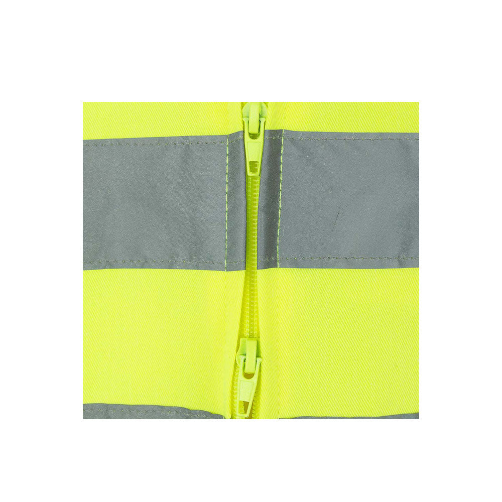 Certificação Classe 3: O Nível Máximo de Segurança. Ao contrário de modelos padrão, o Feltre possui certificação EN ISO 20471 Classe 3. Graças à sua ampla superfície de tecido fluorescente e às faixas refletoras estrategicamente posicionadas no torso, mangas e pernas, este equipamento garante que o utilizador seja detetado mesmo em condições de visibilidade mínima e em ambientes com tráfego de alta velocidade.