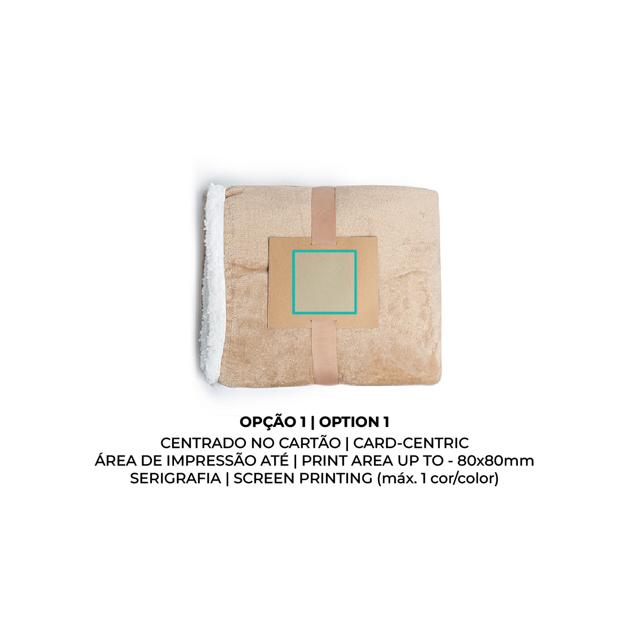 A Manta Cobh apresenta-se elegantemente com uma fita de cor condizente e inclui um cartão ideal para impressão, tornando-a perfeita para personalização e um brinde de empresa de alta qualidade ou presente.