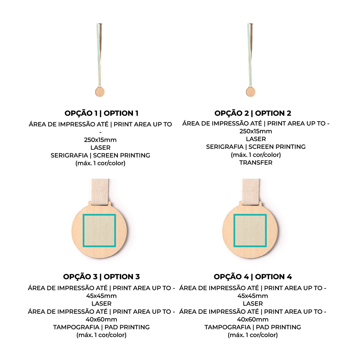 A medalha é fabricada em bambu, um material ecológico e renovável que lhe confere um aspeto premium e distinto. É complementada por uma fita de algodão, um material suave e natural que garante conforto ao ser usada ao pescoço.