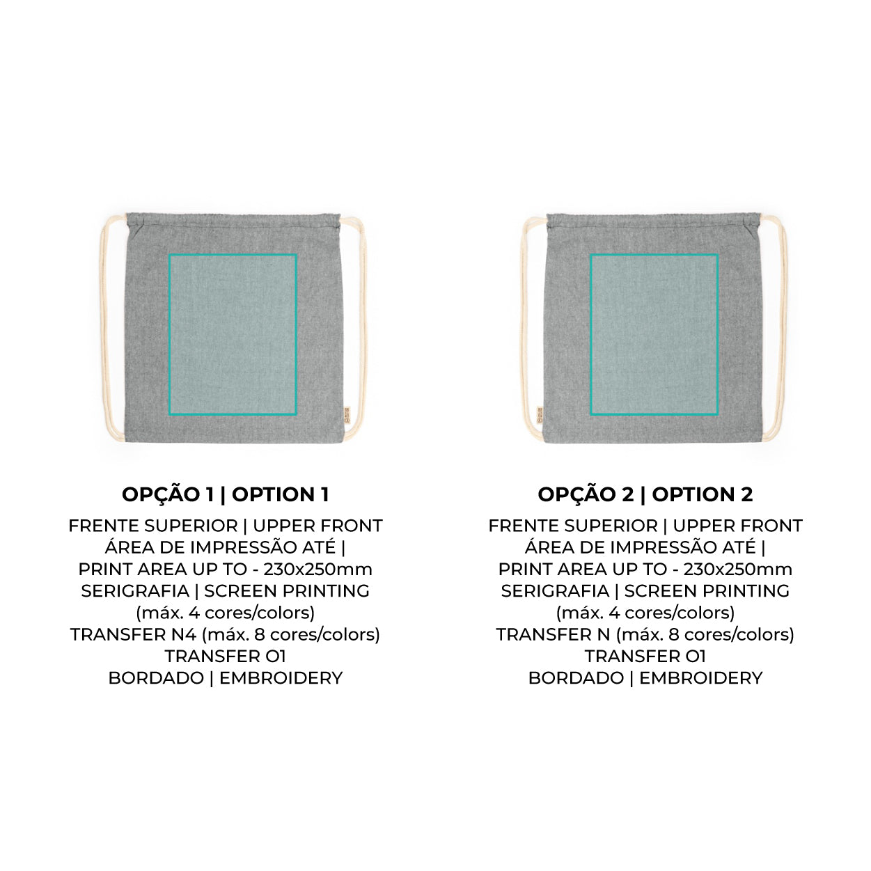 A harmonia perfeita entre economia e ecologia. A Mochila Alcoy é a escolha ideal para quem procura uma solução promocional prática, mantendo um compromisso firme com o meio ambiente. Fabricada em algodão reciclado de 120 g/m², esta mochila de cordas oferece uma leveza excecional, sendo o acessório perfeito para eventos, congressos ou como um saco auxiliar reutilizável para o quotidiano.