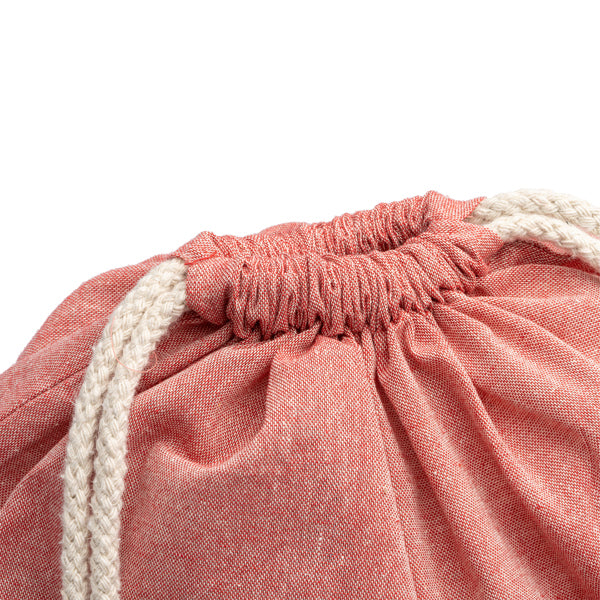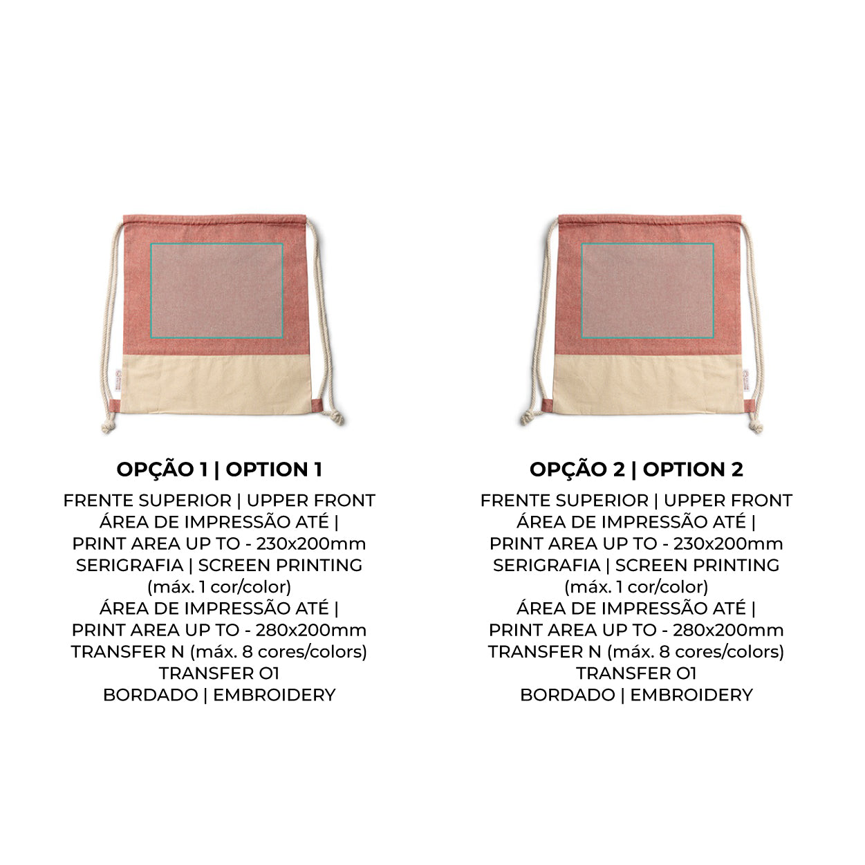 A elegância da simplicidade com um toque têxtil diferenciador. A Mochila Eibar é uma peça essencial para quem procura um brinde promocional que equilibre consciência ecológica e uma estética apurada. Fabricada em algodão reciclado de 120 g/m², destaca-se pelo seu acabamento em urze (heather), uma técnica de fiação que mistura diferentes tonalidades de fibras para criar um efeito visual mesclado, suave e muito contemporâneo.