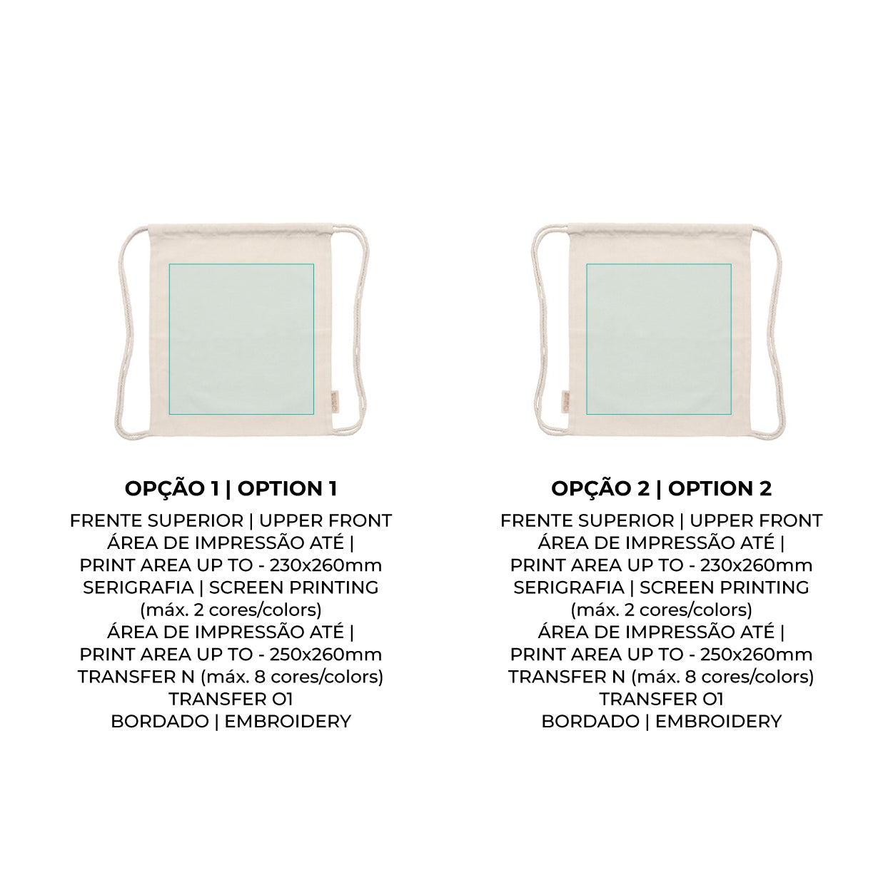 - Gramagem Superior (140 g/m²): Proporciona um corpo mais estruturado e uma maior durabilidade em comparação com as mochilas de cordas standard.