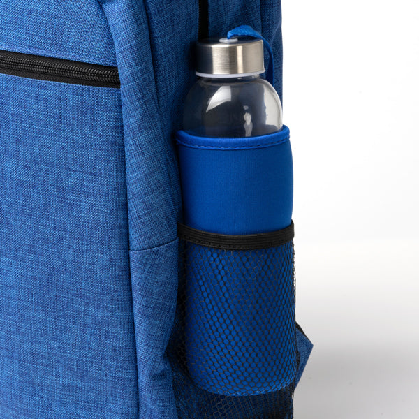 Esta mochila é fabricada em RPET 600D, um poliéster proveniente de materiais reciclados, o que demonstra o seu compromisso ecológico. O seu aspeto é distintivo, graças ao acabamento marmoreado, que lhe confere um visual único e premium.